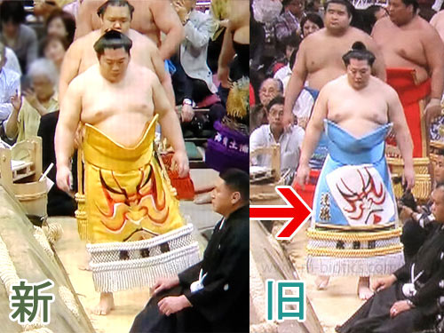 ↑えっ!! な、な、な、何これ!! 初めて見る!! 永谷園の新しい化粧まわしだ!!
