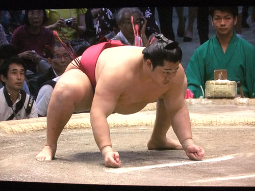 ↑相手は、化粧まわしが素敵なロシア出身の阿夢露(アムール)。